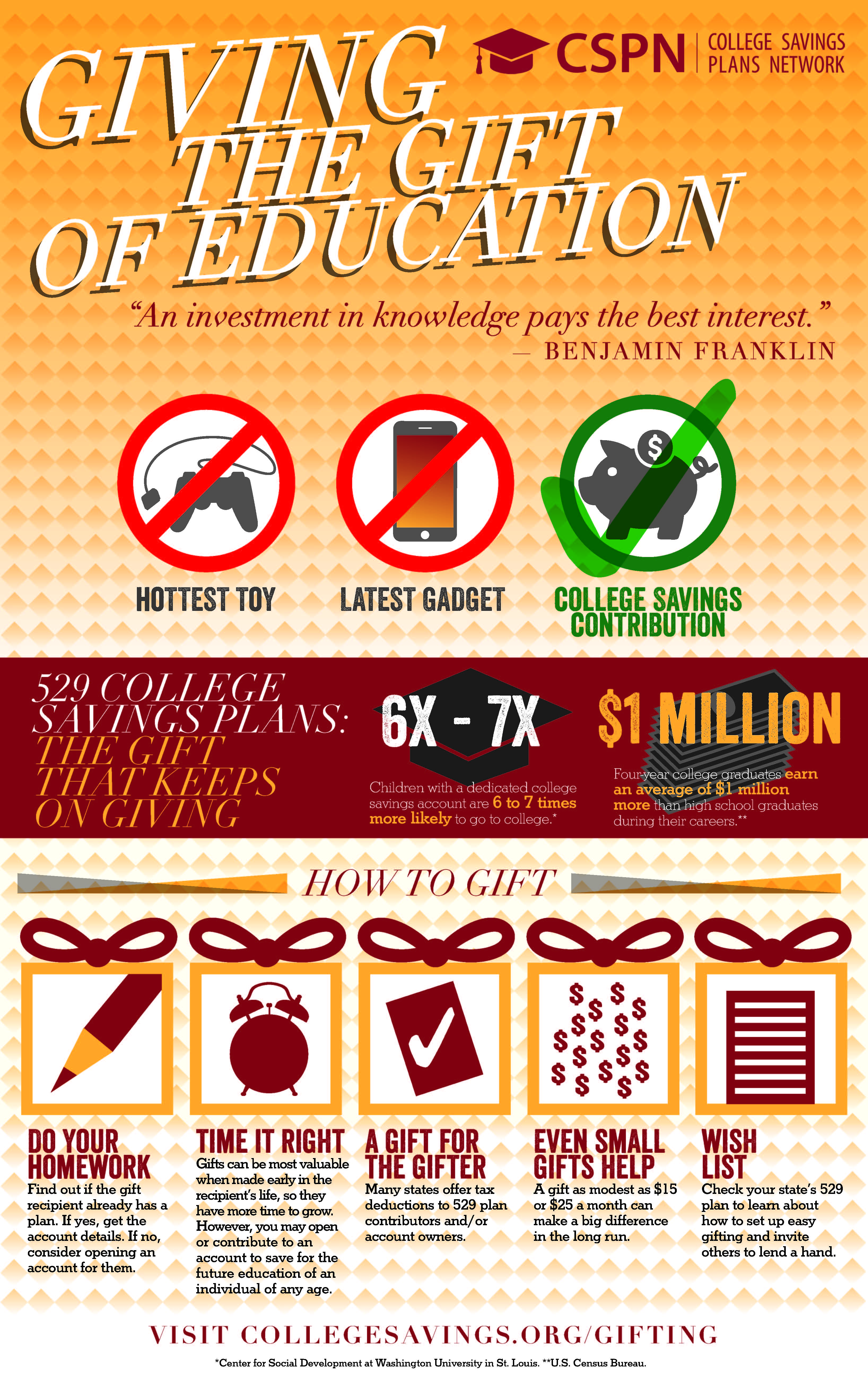 Many states offer an income tax deduction or credit based on your contributions into a 529 plan.